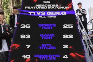 体育资讯7月13日讯 2025MSI决赛GEN VS T1赛前,LOL官方发布T1和GEN的历史交手战绩。