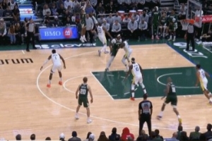 球进灯亮!特伦特干拔三分压哨命中 字母哥场边兴奋庆祝