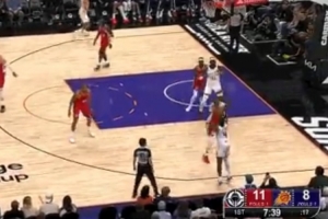 玩这么帅!杰伦·格林佯装突破 运球回拉撤步三分一气呵成