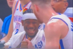 SGA&哈滕提前下班后握手嬉笑 前者3节打卡无缘31分 后者无缘30+20