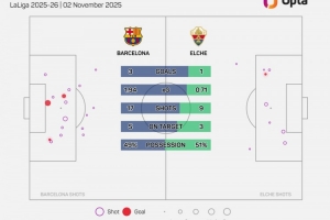 05-06赛季以来,埃尔切是首支西甲战巴萨时控球高于对手的升班马